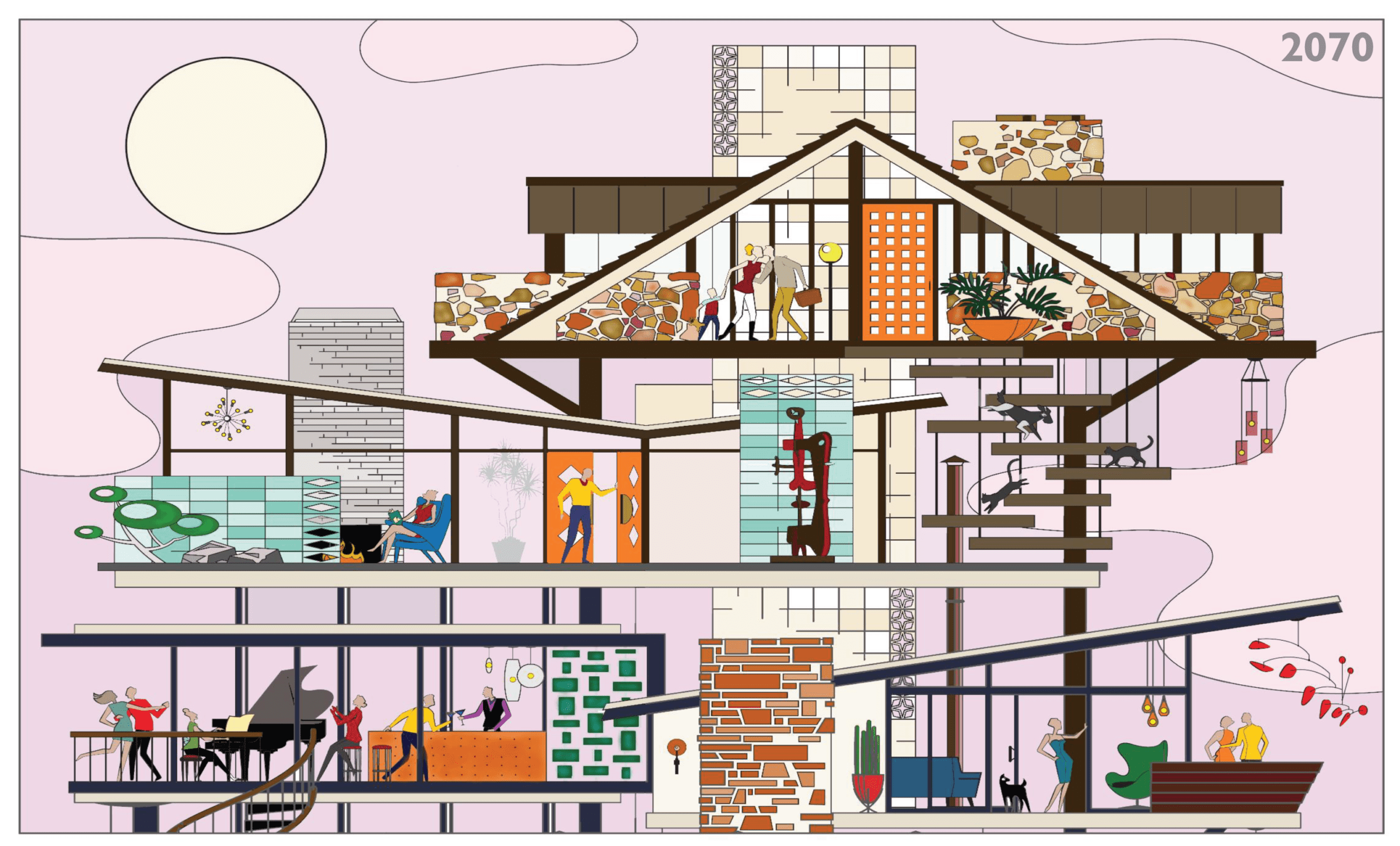 Second prize went to Caz in Melbourne who had previously booked in a “Dr Retro House Call” for his newly purchased mid-century home. The judges like Caz’s innovative use of electrical engineering software to apply the colours to the image, which is probably the first time this software has been used for a colouring competition. I am sure that Caz’s proposed renovation to his new home will be just as innovative, and colourful. Caz hasn’t received his prize yet which is a beautiful 100o piece “Modern House” jigsaw puzzle by artist Chistian Musselman, but will have it handed to him personally when he has his “Dr Retro House Call” to his new home.