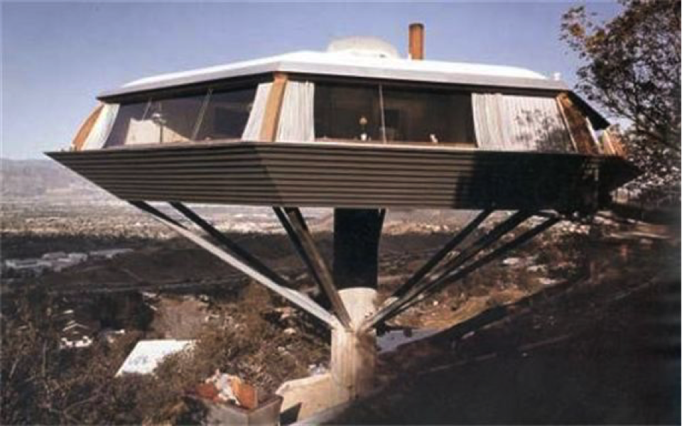 Most distinctively, the house is perched atop a concrete pole nearly 10 metres high. This innovative design was Lautner’s solution to a site that, with a slope of 45 degrees, was thought to be practically unbuildable. The house is reached by a small cliff railway. Owing to the concrete pedestal, almost 6.1 m in diameter, buried under the earth and supporting the post, the house has survived earthquakes and heavy rains.
